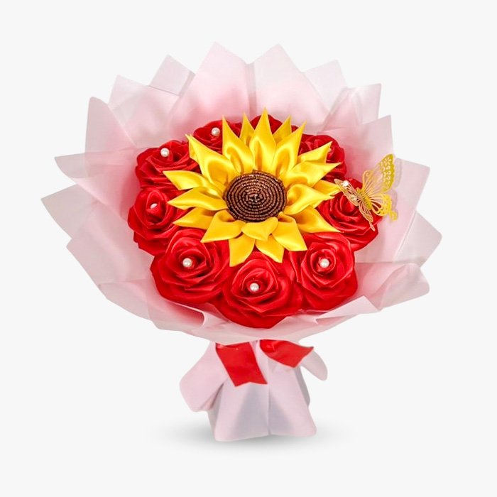9 Rosas eternas + girasol.